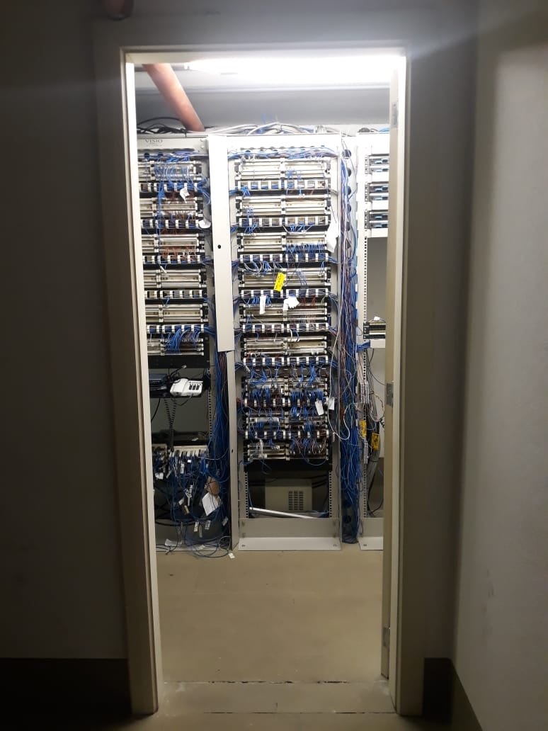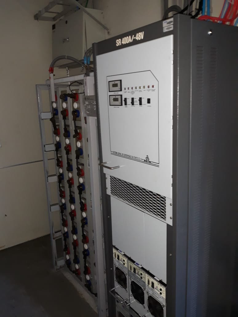 Construção de infraestrutura para instalação de cabeamento estruturado, equipamentos e sistema ininterrupto de energia elétrica: retificadores, inversores, no breaks, banco de baterias, quadros de distribuição de eletricidade, tubulações, canaletas, racks e Sistemas de Proteção contra Descarga Atmosférica - SPDA.